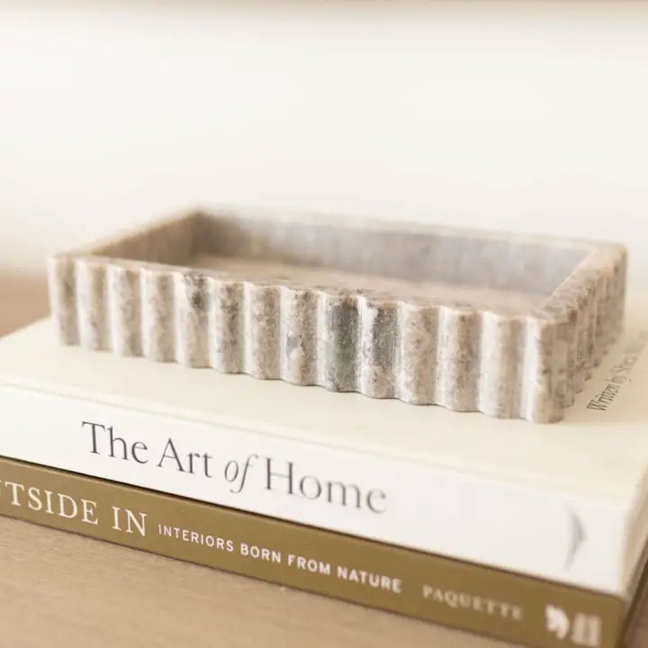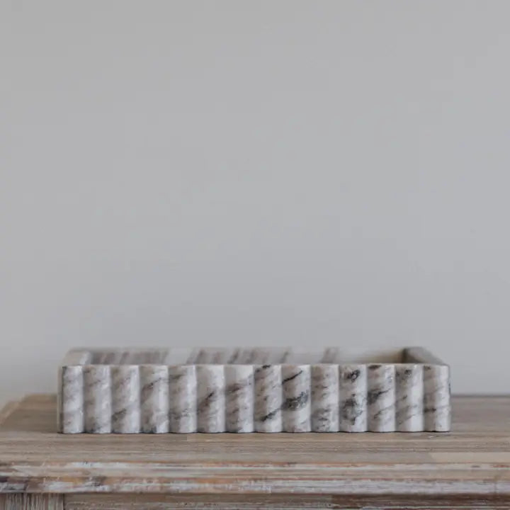 Fluted Marble Scalloped Bridge Tray Beige