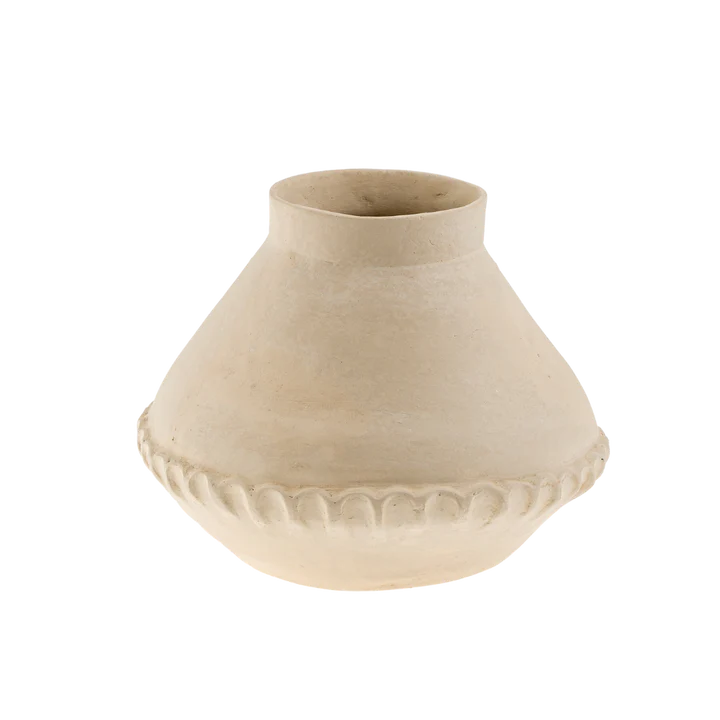 Regular price $165.00Add scale and dimension to your space with our sculptural paper mache vases. These eye catching vases are sure to make a statement, especially when styled with dried florals. Made from recycled newspaper, the vase is entirely natural and sustainable. There is no firing, no power used, and the process is entirely eco-friendly. Porous in nature, paper mache should not be exposed to liquids.